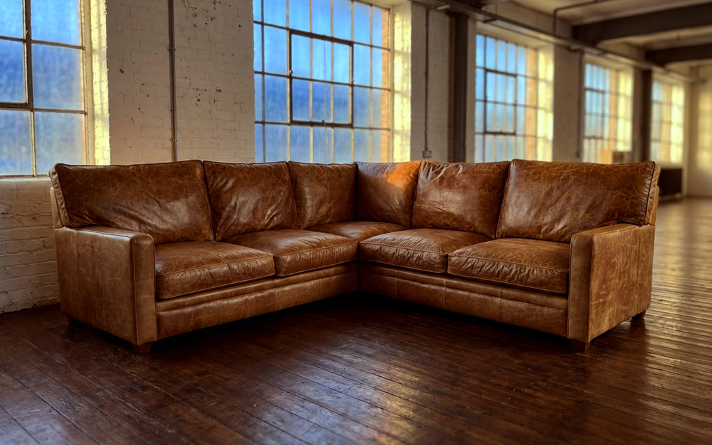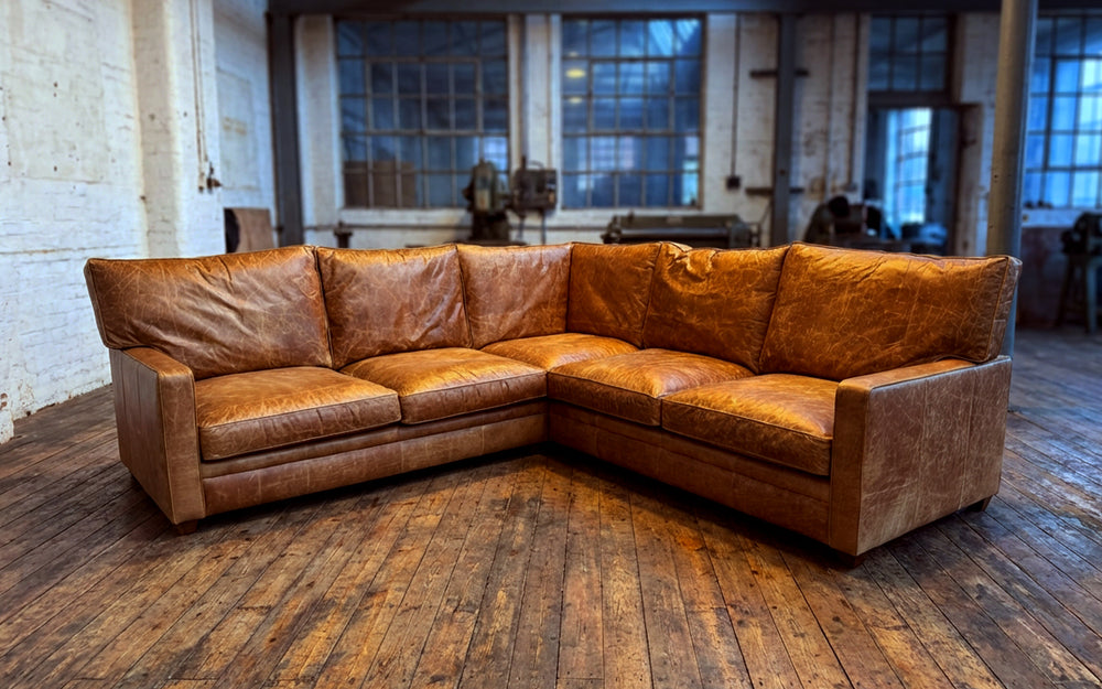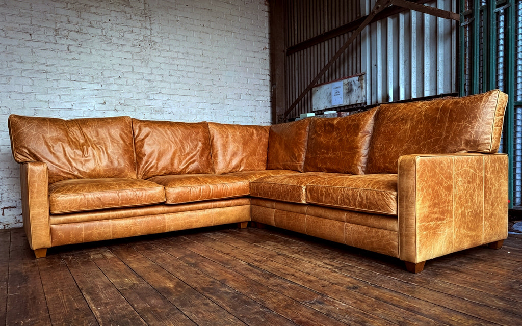 Bespoke Large Atticus Corner sofa - 270cm x 270cm in Vintage Honey Leather - In stock