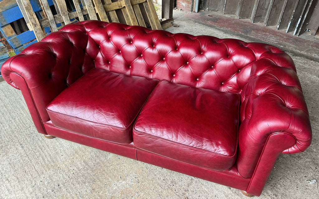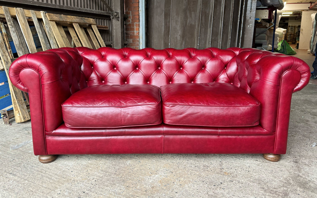 We appreciate comfort can subjective, and everyone’s take on it is different. That’s why we’re always happy to invite you to come and try out our handmade Chesterfields and sofas before you buy. Please contact Warren on 0161 359 5462 to arrange your appointment, and be sure to ask after Huxley – our most sizable, sumptuous Chesterfield.